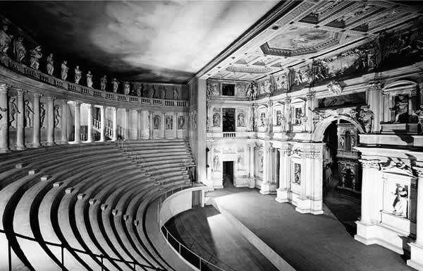 La arquitectura teatral renacentista marcó un punto de inflexión en la historia del espacio escénico. Inspirados por los teatros clásicos grecorromanos, los arquitectos del Renacimiento italiano revivieron el modelo de teatro semicircular con un enfoque en la perspectiva visual y la proporción armónica. El ejemplo más influyente de este periodo es el Teatro Olímpico de Vicenza, diseñado por Andrea Palladio en 1580 y completado por Vincenzo Scamozzi. Este teatro introdujo por primera vez una escenografía arquitectónica permanente con perspectivas falsas, estableciendo un precedente para el teatro como arte espacial (Blair, 2014).